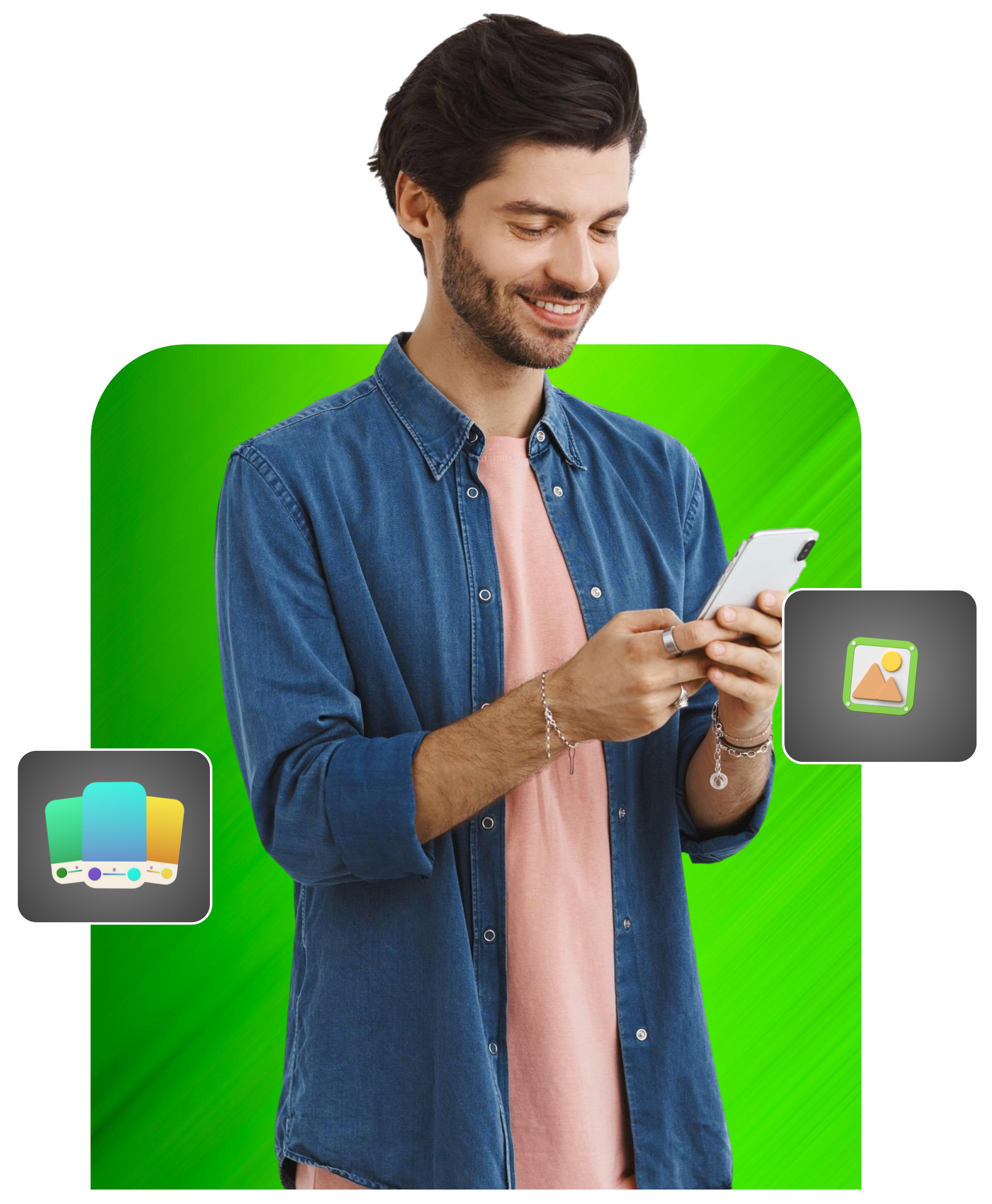 - Drag-and-drop voiceover integration — apply your voice to ANY video, graphic, reel, or slideshow